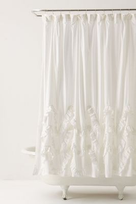 I LOVE RUFFLES!!! I spent days searching for the perfect white ruffle shower curtain. The Urban Outfitters one is by far my favorite, but I couldn't let myself spend $80 on it, so I found one on amazon for $25 that was top to bottom ruffles like the Urban Outfitters one but they are bigger so it doesn't seem as full. I still like the UO one best, but for $25 I am completely happy with mine!