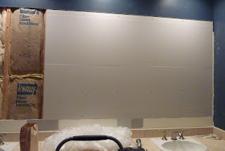There were two different vanity areas (Justin was thankful he didn't have to navigate around all my stuff). Because I didn't take a very good picture, you can't see it, but there was a cute little vanity stool in one of the areas. Also, you can barely see a close-up of the pretty striped wallpaper on the right side of the top picture.
